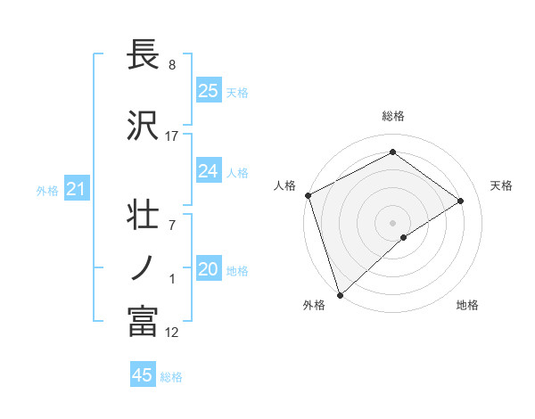 長沢 壮ノ富さんを姓名の画数から五運を鑑定