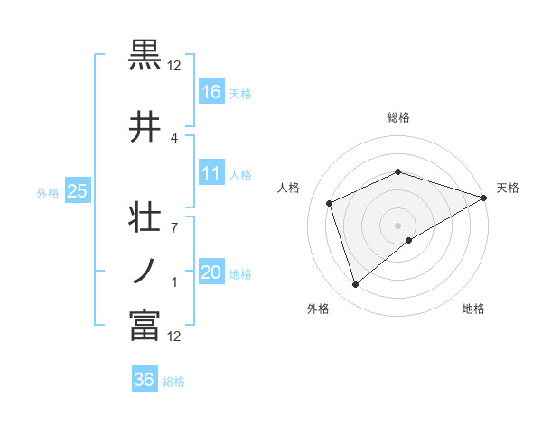 黒井 壮ノ富さんを姓名の画数から五運を鑑定