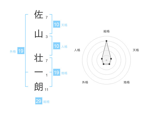佐山 壮一朗さんの総格は29画の4点!