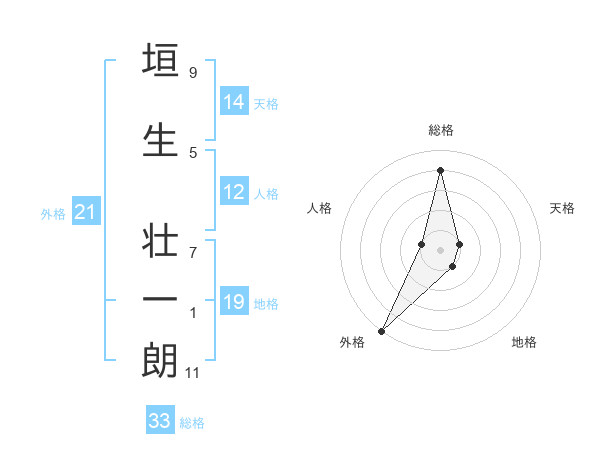 垣生 壮一朗さんを姓名の画数から五運を鑑定