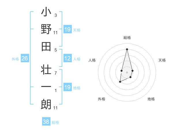 小野田 壮一朗さんの総格は38画の4点!