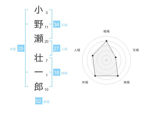 小野瀬 壮一郎さんを姓名の画数から五運を鑑定