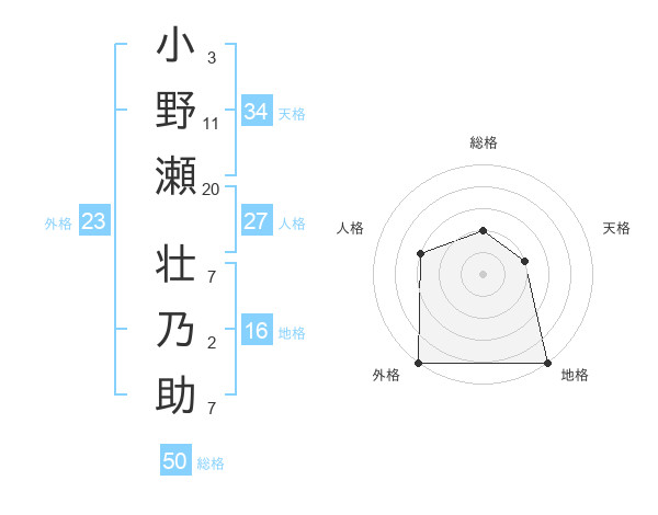 小野瀬 壮乃助さんを姓名の画数から五運を鑑定