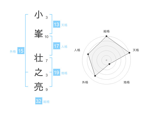 小峯 壮之亮さんの天格は13画の5点!