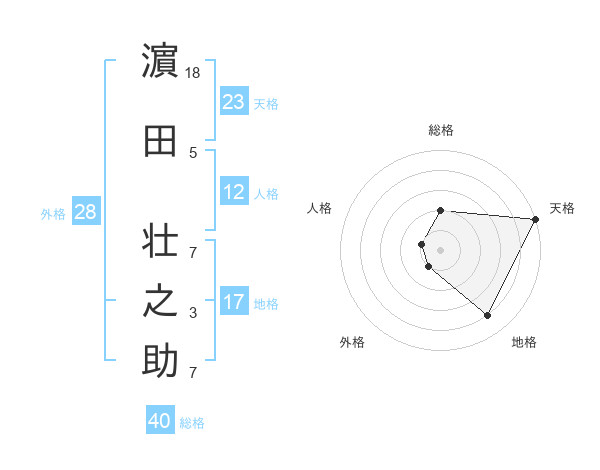濵田 壮之助さんの天格は23画の5点!