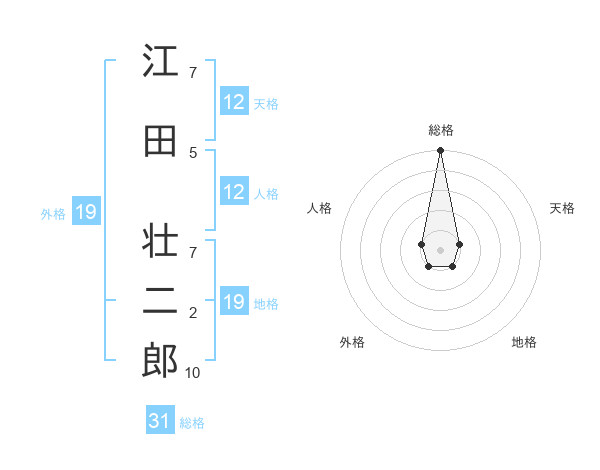 江田 壮二郎さんの総格は31画の5点!