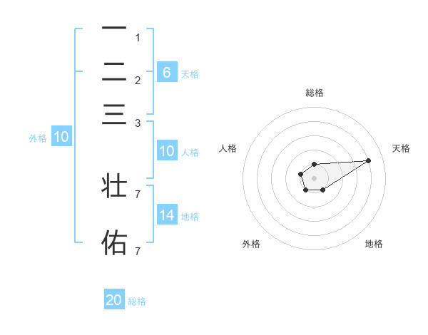 一二三 壮佑さんの総格は20画の1点!