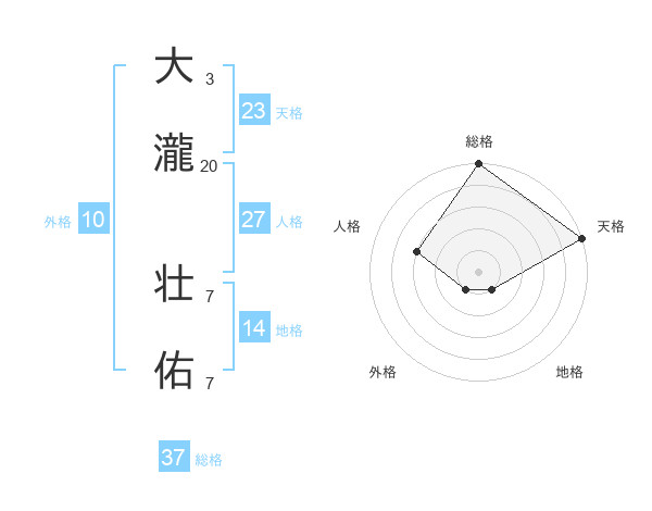 大瀧 壮佑さんを姓名の画数から五運を鑑定