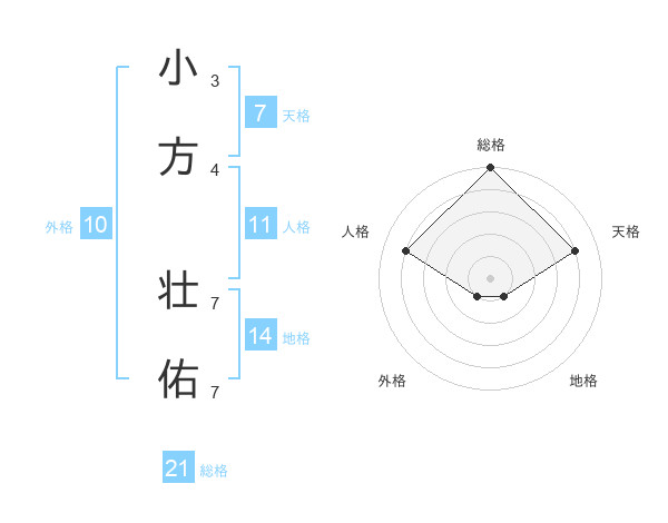 小方 壮佑さんの総格は21画の5点!