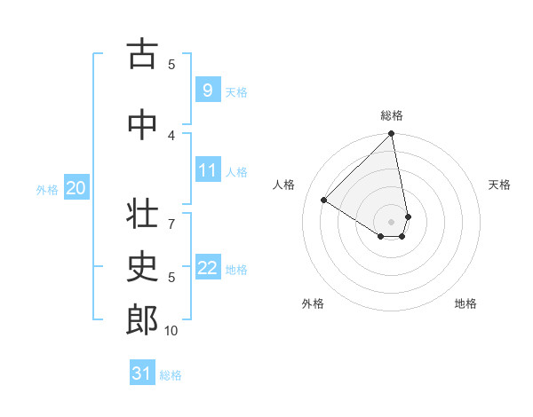 古中 壮史郎さんの総格は31画の5点!