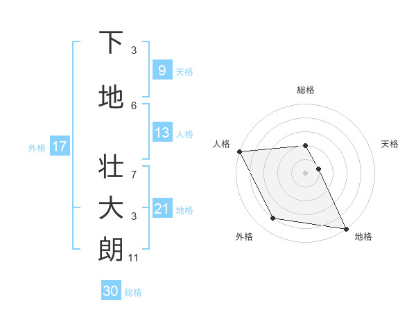 下地 壮大朗さんを姓名の画数から五運を鑑定