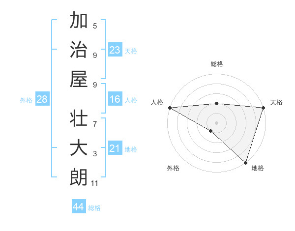 加治屋 壮大朗さんを姓名の画数から五運を鑑定