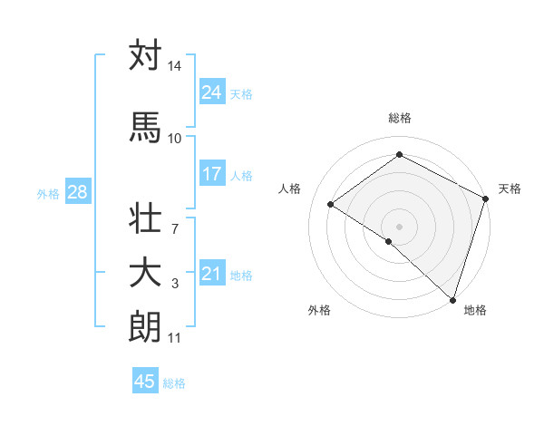 対馬 壮大朗さんを姓名の画数から五運を鑑定