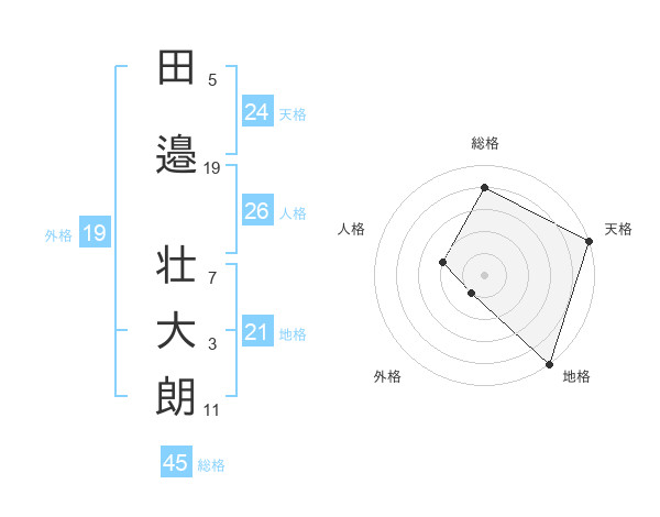 田邉 壮大朗さんを姓名の画数から五運を鑑定