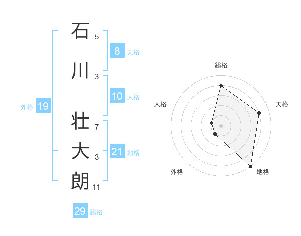 石川 壮大朗さんを姓名の画数から五運を鑑定