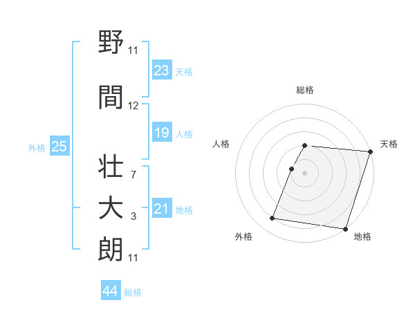 野間 壮大朗さんの総格は44画の2点