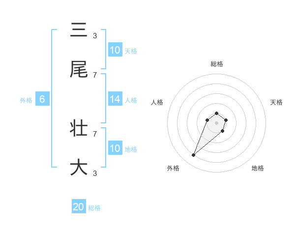 三尾 壮大さんを姓名の画数から五運を鑑定