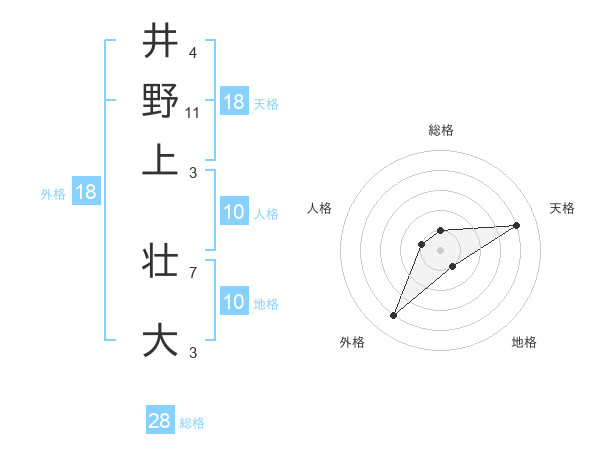井野上 壮大さんを姓名の画数から五運を鑑定