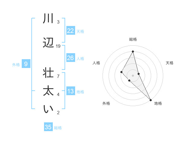 川辺 壮太いさんを姓名の画数から五運を鑑定