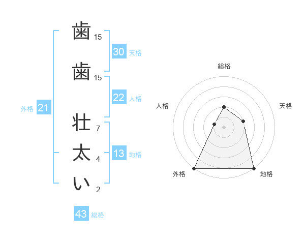 歯歯 壮太いさんの外格は21画の5点!