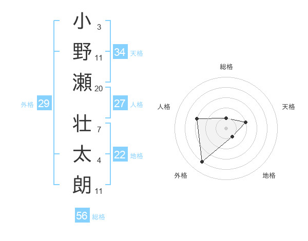 小野瀬 壮太朗さんを姓名の画数から五運を鑑定
