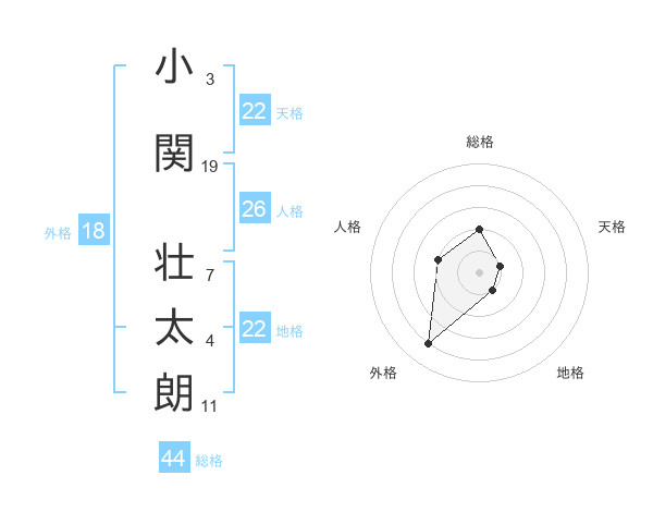 小関 壮太朗さんの総格は44画の2点