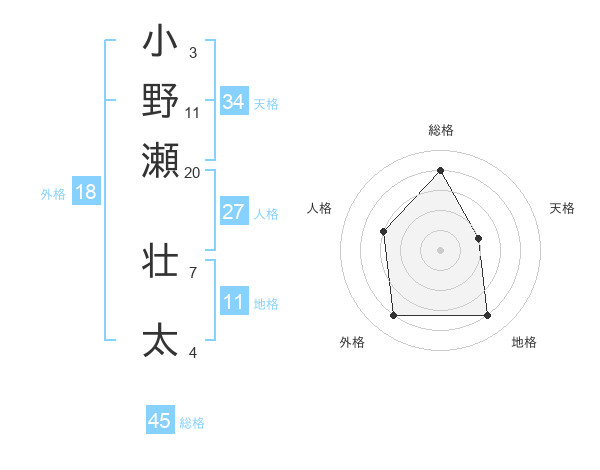 小野瀬 壮太さんを姓名の画数から五運を鑑定