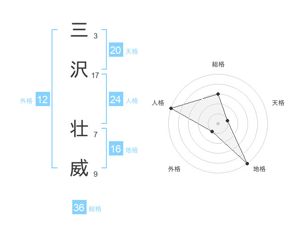 三沢 壮威さんを姓名の画数から五運を鑑定