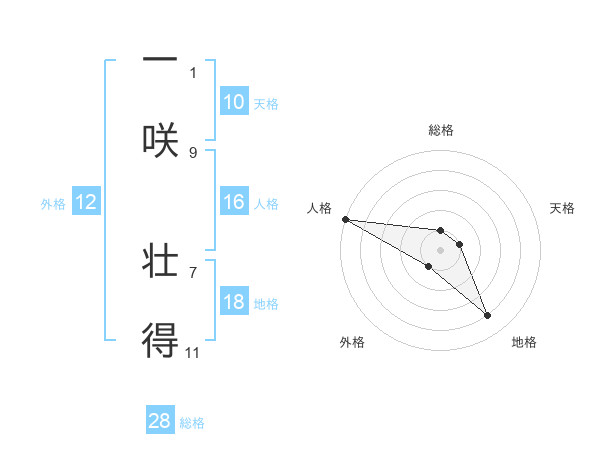 一咲 壮得さんを姓名の画数から五運を鑑定