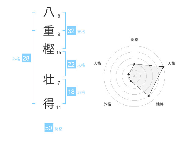 八重樫 壮得さんを姓名の画数から五運を鑑定