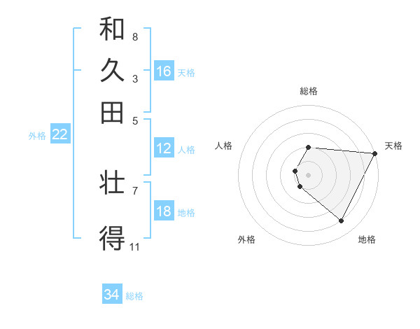 和久田 壮得さんを姓名の画数から五運を鑑定