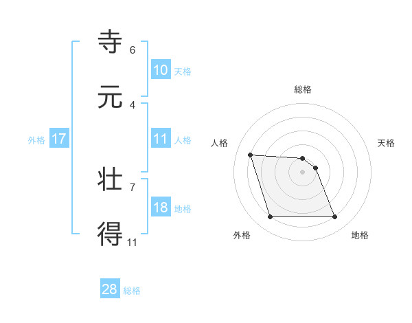寺元 壮得さんを姓名の画数から五運を鑑定