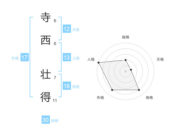 寺西 壮得さんの外格は17画の4点!