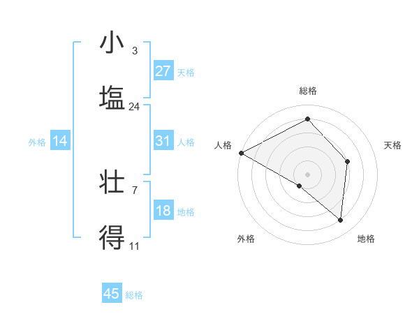 小塩 壮得さんの総格は45画の4点!