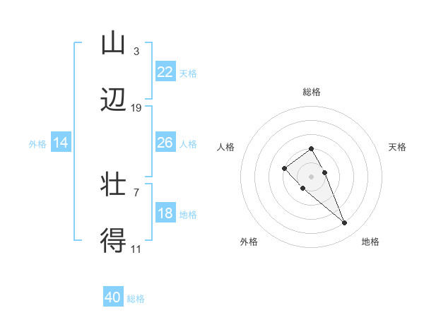 山辺 壮得さんを姓名の画数から五運を鑑定