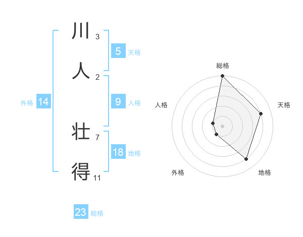 川人 壮得さんの天格は5画の4点!