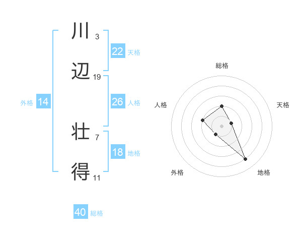 川辺 壮得さんを姓名の画数から五運を鑑定