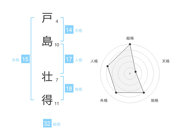 戸島 壮得さんを姓名の画数から五運を鑑定