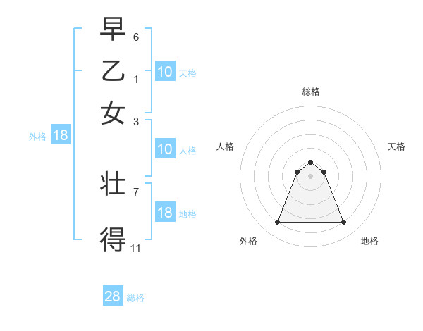 早乙女 壮得さんの総格は28画の1点!
