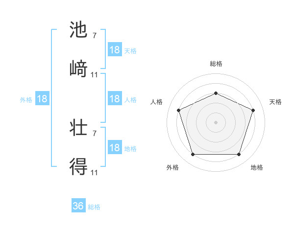 池﨑 壮得さんの地格は18画の4点!