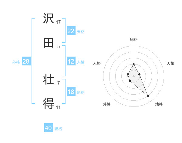 沢田 壮得さんを姓名の画数から五運を鑑定
