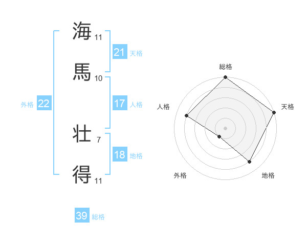 海馬 壮得さんを姓名の画数から五運を鑑定
