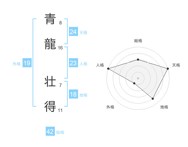 青龍 壮得さんを姓名の画数から五運を鑑定
