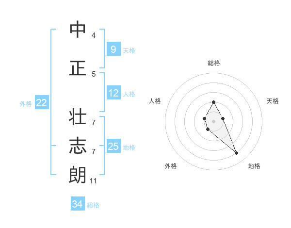 中正 壮志朗さんの外格は22画の1点!