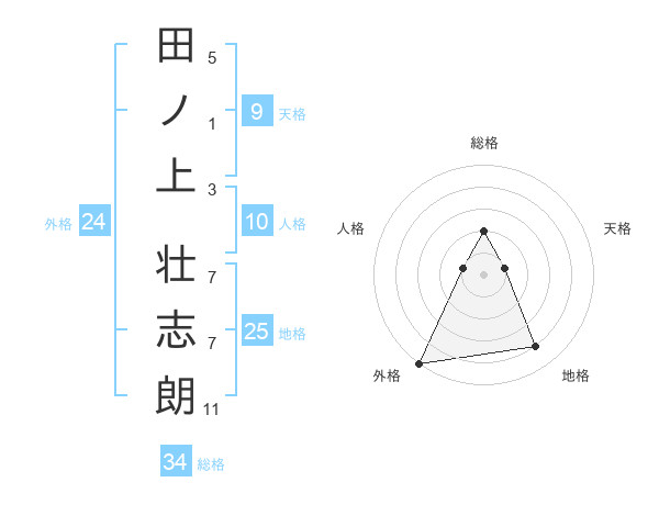 田ノ上 壮志朗さんの総格は34画の2点