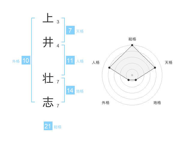 上井 壮志さんの総格は21画の5点!