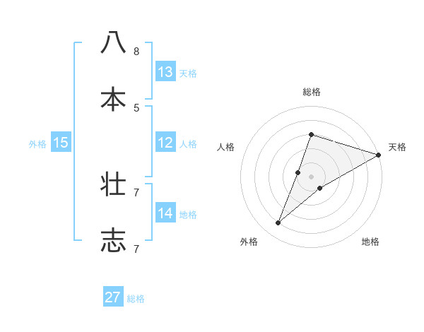 八本 壮志さんの天格は13画の5点!