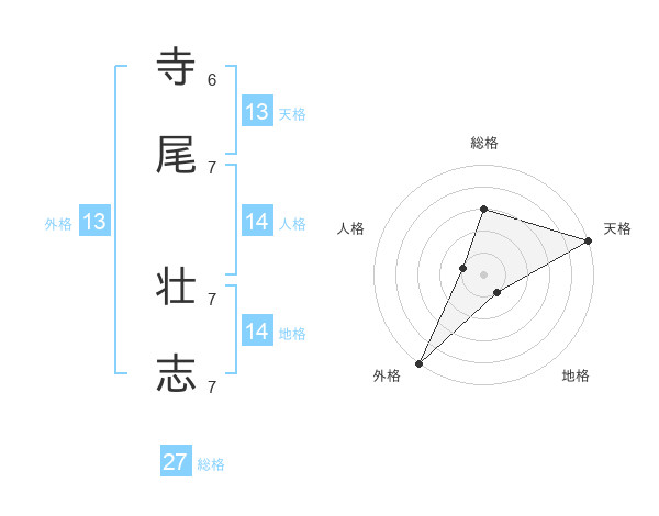 寺尾 壮志さんを姓名の画数から五運を鑑定
