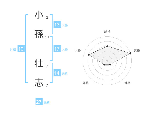 小孫 壮志さんを姓名の画数から五運を鑑定