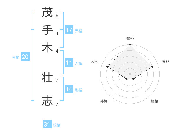 茂手木 壮志さんを姓名の画数から五運を鑑定